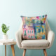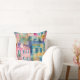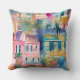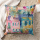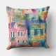 20" x20" Dekorator Kissen mit einem bunten Bild von niedlichen rosa, aquamarinen und gelben Aquarellhäusern und tropischen Palmen.