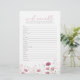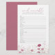 Behalt den Gästen das Pink Baby In Bloom Wildblume Word Scramble Game, eine niedliche und einnehmende Ergänzung zu Ihrem Baby in Blütendusche. Mit sanften Rosatönen und zarten Wildblumen verbindet dieses Baby-Duschspiel Spaß und Eleganz und eignet sich somit perfekt für jede Blumenfeier oder für jede inspirierte Gartenfeier. Leicht zu spielen und schön gestaltet, ist dieses Wort Rührei ein großartiger Weg, um das Eis zu brechen und Ihrem Baby-Duschfestival fröhliche Energie zu verleihen.