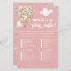 Treten Sie ein in eine Welt der Laune und Vorfreude mit unserem Pink Teddy Bear Whats in Your Purse Baby Shower Game, einer Herzensfeier, bei der Träume in sanften Pastelltönen und Retro-Charme zum Fliegen kommen. Dieses bezaubernde Design besticht durch einen süßen, beigen Bär, der in einem Korb steil in die Höhe schießt und von einem prächtigen Luftballon aus einer Reihe kleiner Beige- und Goldkugeln gehoben wird. Jedes Detail ist liebevoll gefertigt, um das Wesen der Freude und Aufregung zu erfassen, während die Ankunft des Kleinen in der Nähe zeichne. Der weiche, rosa Hintergrund umhüllt die Szene mit einer sanften Wärme, während der Retro-Schriftart der Gesamtkomposition eine Touch nostalgischer Eleganz verleiht. Matching-Elemente verfügbar.
