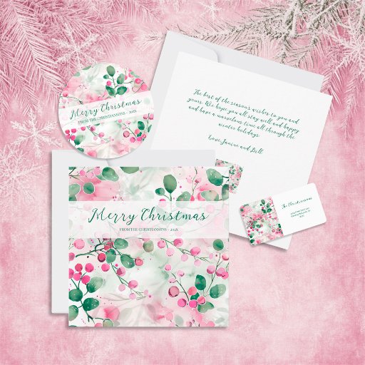 Elegant Pink Berries Floral ChristmasDesignt von Friendship Designs