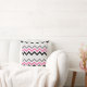 Rosa, schwarz, dunkelgrau, leicht grau und weiß Zickzack Muster Zigzags Kissen.