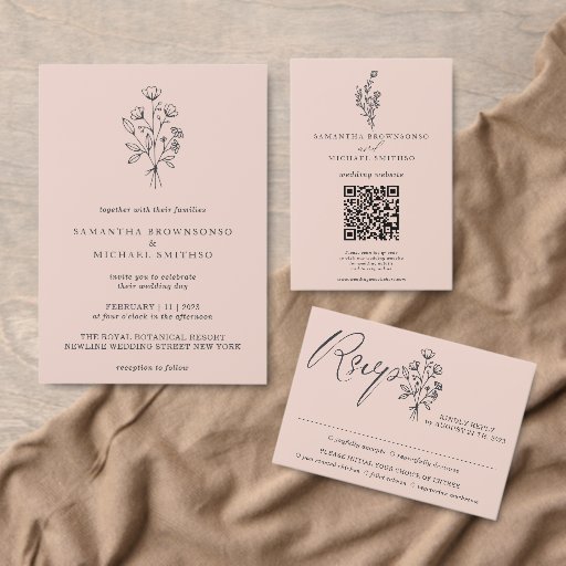 Pink Blume Bouquet Qr Wedding Website Begleitkarte