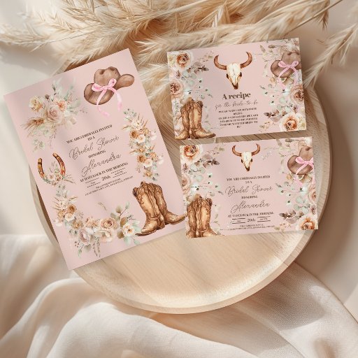 Pink Boho Floral Western Brautparty Begleitkarte