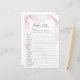 Mit diesem zauberhaften "Baby Word Scramble"-Spiel mit einem süßen Aquarell-Coquette-Bogen macht Ihr Baby Dusche einen besonderen Spaß. Die Gäste werden Liebe haben, sich mit dem Baby zu beschäftigen, um sich in dieser ansprechenden Aktivität zu vergnügen, die perfekt ist, um alle Unterhaltung behalten. Bestellen Sie noch heute Ihre Bestellung und schaffen Sie Ihren Gästen ein unvergessliches Erlebnis!
