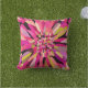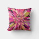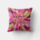 Dieses Kissen mit abstrakter Blume in Rosa, Rot, Orange, lila, Chartreuse, Olivgrün, Wein und Lavendel auf schwarzem Hintergrund.