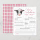 Niedliches Kuh Thema Baby Dusche Baby Vorhersagen und Ratschläge Karte mit Illustrationen der Babykuh mit einer rosa Blume. Perfektes Spiel während der Dusche zu spielen und wird definitiv ein toller Sake sein! Die Karte frage den Gästen vorherzusagen, wie das Baby aussehen würde.