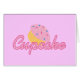 Diese süßen grafischen T-Shirts und andere Gegenstände haben ein Bild von einem rosa mattierten Kuchen mit Sprinklen und Retro-Text.