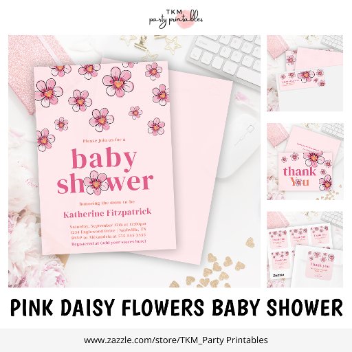 Pink Daisy Flowers Baby ShowerDesignt von TKM Party Printables