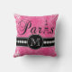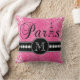 Dieses beunruhigte Damastmuster Throw-Kissen des heißen Rosas mit personalisiertem Ihre Monogramminitiale, das Wort Paris mit dem Eiffel-Turm und eine Schriftzeile weiße Diamanten auf einem schwarzen Band schaut in Ihrem Schlafzimmer oder in Wohnzimmer als Akzentkissen fantastisch. Monogramm-Galerie Gifts© Elke Clarke entwirft ©