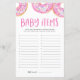 Welcher Babyartikel fängt mit jedem Buchstaben an? Kannst du erraten, was die Mutter geschrieben hat? | Fügen Sie diese lustige Spielkarte für Babyartikel zu Ihrer Babydusche hinzu. Diese Baby Dusche Trivialkarte verfügt über rosa WasserfarbenDonuts mit bunten Sprinklen. Personalisieren durch Hinzufügen von Namen, Ereignis und Datum. Dieses rosa Donuts Baby Items ist perfekt für jede Babydusche oder jedes Thema.