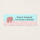 Ein rosa Elefant auf einem weichen, blauen, rosa und weißen Polka Punkt Hintergrund. Ein guter Weg, um zu danken! Passen Sie den Namen auf der Rückseite nach Bedarf an.