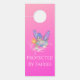 Ein wunderschöner Türhänger, perfekt für Ihr Kinderzimmer! Mit einem weichen rosa Farbverlauf und einer charmanten Märchenvorlage fügt dieser Türhänger eine Touch von Magie und Sicherheit hinzu. Die Botschaft "Geschützt durch Fairies" wird elegant dargestellt, um sicherzustellen, dass sich Ihr Kleiner sicher fühlt und von seinen knebeligen Schützern überwacht wird. Dieser Türhänger ist ideal, um ein angenehmes und fantasievolles Schlafambiente zu schaffen, und ist eine angenehme Ergänzung zur Zimmerdekoration eines jeden Kindes. Entdecken Sie das und mehr in unserer Zazzle Kollektion, um eine magische Atmosphäre für Ihr Kind zu schaffen.