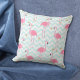 Dieses lustige und hübsche Kissen hat ein Muster von rosa Flamingo-Vögeln und Imitaten goldenen Kreis Punkte. Die Bilder werden auf einem hellblau-weiß gestreiften Hintergrund platziert. Ideal für einen Innenhof oder ein Solarium mit einem farbenfrohen tropischen Ambiente. Beide Seiten des Kissens haben das gleiche Muster.