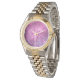 Eine elegante Armbanduhr mit einer schönen, lebhaft bunten rosa Blumenkochszene.