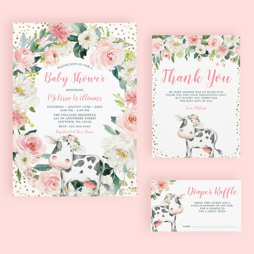 Pink Gold Floral Cow Girl Baby ShowerDesignt von Print Creek Studio Inc