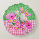Schönes Shabby Chic Stil Rundkissen mit rosafarbenen Blumen & Gingham Apple Green Imitate Glitzer Design - Ein sehr malerischer und gemütlicher Dekorationslook für Ihre Zuhause!
