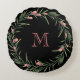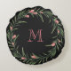 Niedliche mit Monogramm Blüte mit rosa Knospen über schwarzem Hintergrund. Individuell anpassbare Rundkissenvorlage
