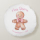 Gingerbread and Christmas go together so well. What is cuter than a little gingerbread man with pink cheeks and a pink holiday bow? Not much is sweeter than this! This smiling person is from a vintage, watercolor design that is just right for a holiday round pillow. Merry Christmas! Be sure to edit the example family name and year to your own choices. They appear in bright pink topography.