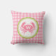 Ein Kissen mit rosa Gingham-Design auf Vorder- und Rückseite. Rosa Krabbe vorne. Personalisieren Sie mit Ihrem ersten.