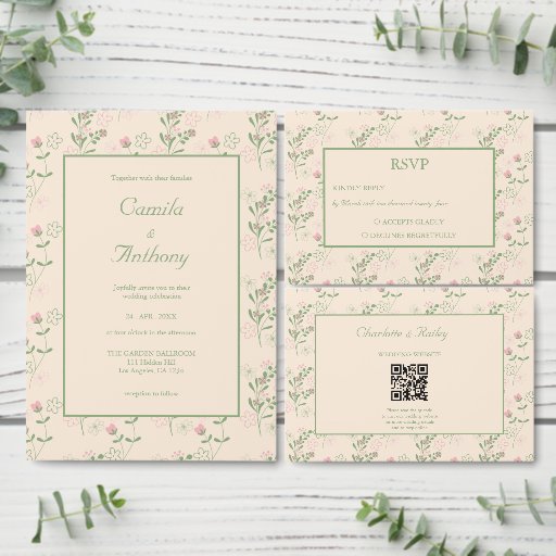 Pink Green Retro Y2K 70s Flower Pattern Wedding Designt von Dia Sha