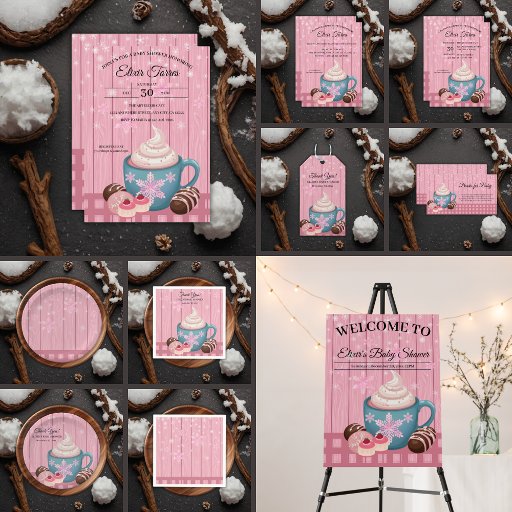 Die Pink Wooden Hot Cocoa Whipped Cream Baby Shower Collection kombiniert einen rustikalen Charme mit weichen, femininen Touchs. Die zarten Winterakzente, wie Schneeflocken und Gebäck, gepaart mit Blütentönen, machen es zu einem idealen Ort für eine charmante und warme Babydusche während der Wintersaison. Wenn Sie ein anderes passendes Produkt oder eine Anpassung benötigen, wenden Sie sich bitte per E-Mail an Zazzle.