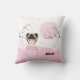 Pink Kokeshi Doll Typical Japanese Landscape Throw Pillow.
