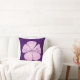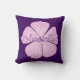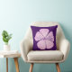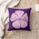 Ein Single rosa Lavatera Blume mit eigenem Namen auf einem dunklen lila Kissen.