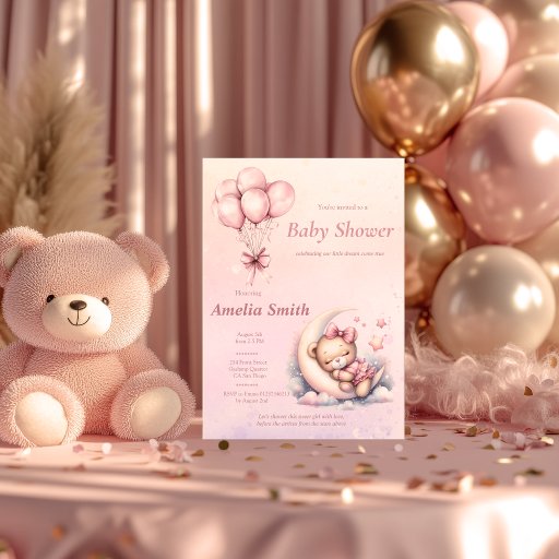 Pink Moon Sweet Sleepy Baby Bear Thema Einladung