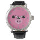 Ein niedliches, hellrosa magentafarbenes Baby-Ferkel Gesicht mit rosa Rundnase und glänzenden schwarzen Augen. Ein originelles digitales Kunstdesign.