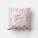 Ein charmantes Muster von rosa Kiefern ist eine schöne Vintage Wasserfarbe. Schneeflocken fallen im Wald. Der gesamte Text, inklusive "Frohe Weihnachten", das in einem feinen rosa Drehbuch steht, ist auf diesem hübschen Urlaubskissen editierbar. Stellen Sie sicher, dass Sie die Beispielnamen und das Jahr ändern.