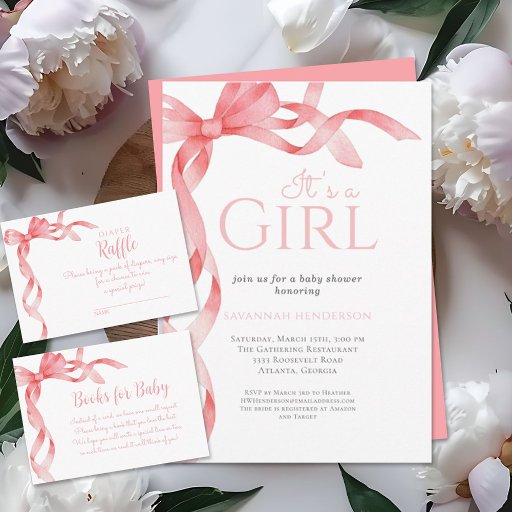 Pink Ribbon Baby Dusche Einladung Dieses elegante rosa Baby Duschbad lädt zu Ihrem besondere Anlass ein.