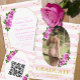 Pink roses graduation with pink and white stripes and gold confetti. Photo template via Pixabay licensed under CC0 and must be replaced with your own photo.