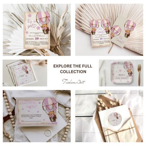 🧸 ✨ Suchen Sie ein rustikales Teddy Bären-Thema mit Heißluftballons für Ihr Party? Dann ist diese niedliche Einladung genau auf Sie zugeschnitten. Pastellfarben wie Rosa, Braun und Beige, niedliche Teddybären in zauberhaften Heißluftballons und mit rosa Sternen bestreut, sind hier perfekt für die Dusche eines kleinen Mädchens. Vergessen Sie nicht, die komplette Kollektion zu entdecken! 🎈 🌟 💕
