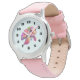 Kinderuhr aus Edelstahl mit rosa Lederarmband