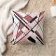 Eine gedämpfte Medaille geometrischer Formen und Linien in verschiedenen Heather-Rosa-Farbtönen, von dunkel bis hell, und Schwarz-Weiß, die für ein diagonales, eckiges abstraktes Kreuz-Design kombiniert, inspiriert von der Moderne des Mitteljahrhunderts. Der diagonale Slant schafft ein Gefühl von subtiler Lebensfreude und Bewegung. Das Design projektiert eine elegante, polierte Qualität für Wohnbereich, Schlafzimmer, Arbeitsbereich, Terrasse oder Innendekoration, die auch ein Gefühl der Wärme, ein entspanntes und friedliches Ambiente für Ihre persönliche Zuhause-Raum, ein Ort für Rückzug und Kontemplation, während Sie weg von der lauten Alltagswelt. Dieses Akzent, das in eine Vielzahl von Stilrichtungen passt, bietet viel dekoratives Potenzial, von Retro/Vintag über rustikale Ranch bis hin zu modernem städtischem Loft oder Hochhaus.