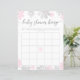 Moderne Baby-Dusche-Bingo-Spielkarte mit Motiven der winterrosa und silbernen Glitzer-Schneeflocken mit dem Text steht "Baby-Dusche Bingo"