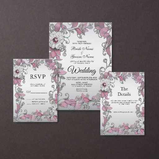 Pink Silver White Floral Tischnummer