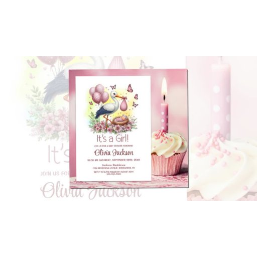 Pink Stork Baby Girl Gratulation Karte