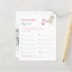 Unterhalten Sie die Gäste mit diesem pinkfarbenen Baby-Food-Spiel. Dieses Spiel mit einer süßen Stork-Illustration in sanften rosa Tönen ist eine unterhaltsame Ergänzung zu Ihrem Baby-Duschprogramm. Die Gäste können Babynahrung probieren oder riechen und versuchen, die Geschmacksrichtungen zu erraten, was sie interaktiv und unvergesslich macht. Dieses Spiel ist perfekt für eine rosa Stork Babydusche geeignet und koordiniert die passenden Einladungen, Schilder und Gefälligkeiten, um ein zusammenhängendes Fest voller Charme und Lachen zu schaffen.