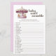 Mit diesem zauberhaften "Baby Word Scramble"-Spiel, das zwei niedliche Teddybären auf einem skurrilen rosa Karussell in Aquarellbildern illustriert, macht das Mädchen mit seiner Dusche einen besonderen Spaß. Die Gäste werden Liebe haben, sich mit dem Baby zu beschäftigen, um sich in dieser ansprechenden Aktivität zu vergnügen, die perfekt ist, um alle Unterhaltung behalten. Bestellen Sie noch heute Ihre Bestellung und schaffen Sie Ihren Gästen ein unvergessliches Erlebnis!