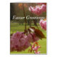 Pink Tree Blossom Ostergrusskarte. Schönes nah von rosa Baumblüte im Frühling zu Ostern auf dieser Grüße Karte begrüßen. Die weitläufigen grünen Bäume und der Park bilden den Hintergrund zu diesem schönen Naturfoto von schöner rosa Blüte. Die Wörter lauten "Ostergrüße" auf der Vorderseite der Karte. Im Inneren ist viel Platz für Ihre persönliche Nachricht. (Anpassbar)