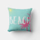 Aquamarines Kissen mit rosa Palmen und weißem "Strand".