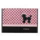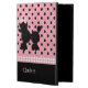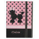 Die Girly Book Cover-Stil iPad Air Gehäuse, mit eingebautem Stand, in rosa mit schwarzen Polka-Punkte, eine rosa und weiße Gingham Band, und eine schwarze Band am Boden gemacht. Niedliche Grafiken eines schwarzen, flauschigen französischen Poodles schmücken die Titelseite. Rosa Text, vorne, ist bereit für sich selbst oder als eine tolle Geschenkidee zu personalisieren. Eine tolle Art, Ihr iPad Air zu schützen und auch stilvoll zu sein.
