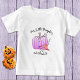 Niedliches non-spooky Halloween Baby oder Kleinkind Shirt für Mädchen. Gedruckt mit Abbildung eines rosa Kürbis und eines rosa und orangefarbenen Polka Dots Hexenhut mit schwarzen Akzenten. Text bearbeiten, um ihn zu personalisieren.