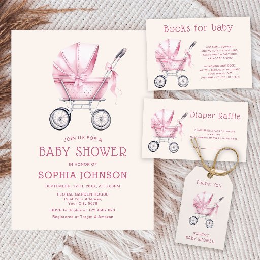 Pink Vintag Baby Carriage Baby Dusche Einladung