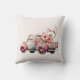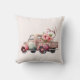 Ein Kissen mit einer niedlichen skurrilen Aquarellbilder. Pfirsich und rosa Farben. Pickup-LKW mit einem alten Holzbett mit Kirschblüten.