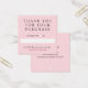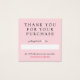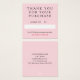 Pink thank you for your purchase package einsatz in a cute minimalist design with a white heart where the person vorbereited the package can sign their name by hand for a personal touch. Add your contact information on the pastel pink other side of the thank you for your order card. You can also write down a discount code for your customers' next purchase.