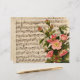 Collage mit einer schönen rosa Rose-Abbildung mit einem Hintergrund Vintager handgeschriebener Noten.