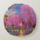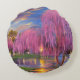 Pink Willow tree bei Sonnenuntergang am Teich Rundes Kissen
