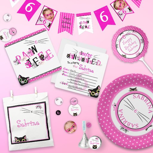 Peeking Cats Pink Polka Dot Kid's PartyDesignt von Kelli H